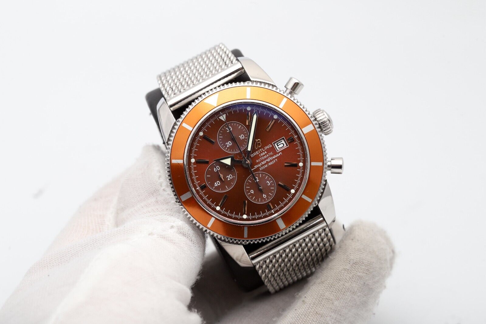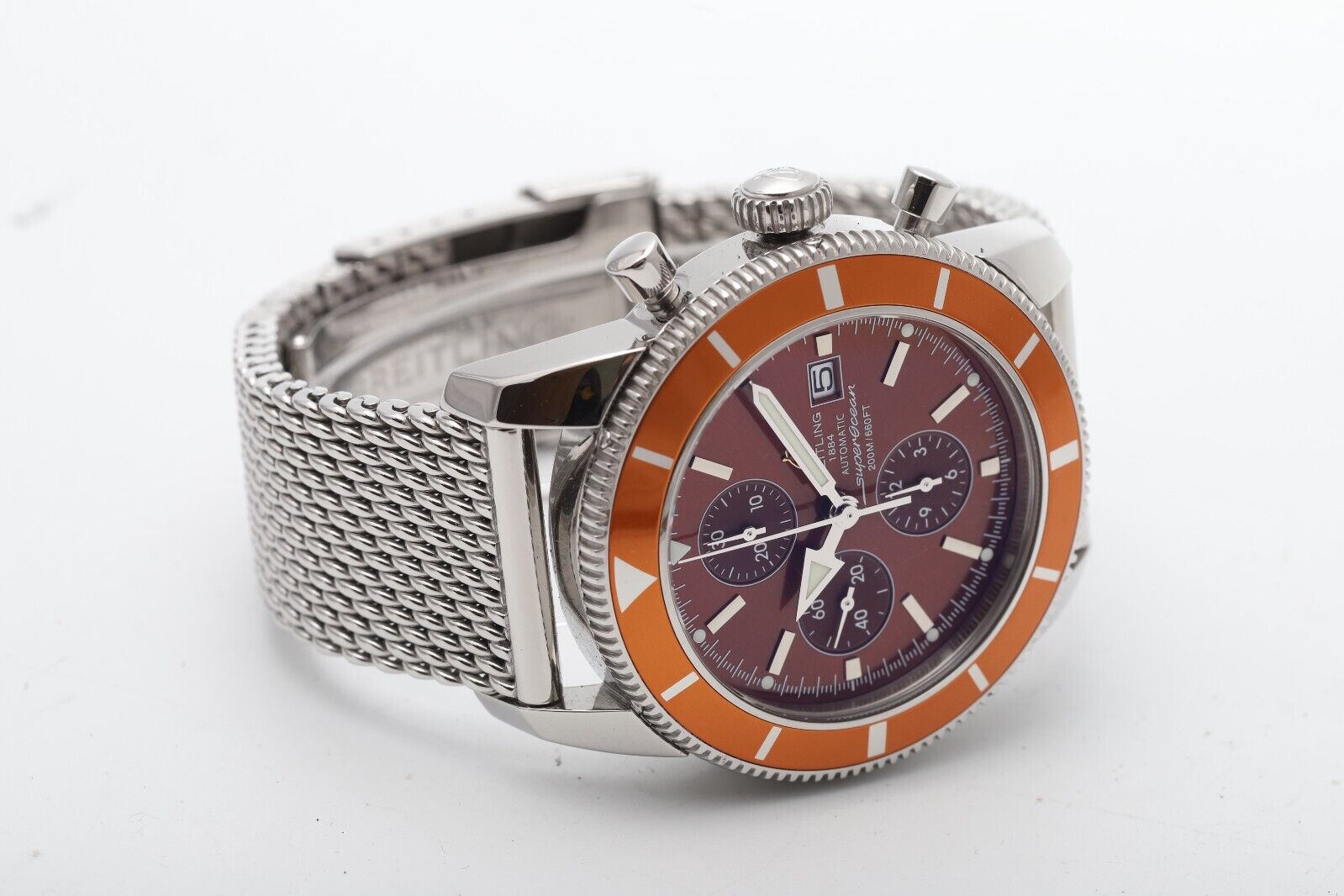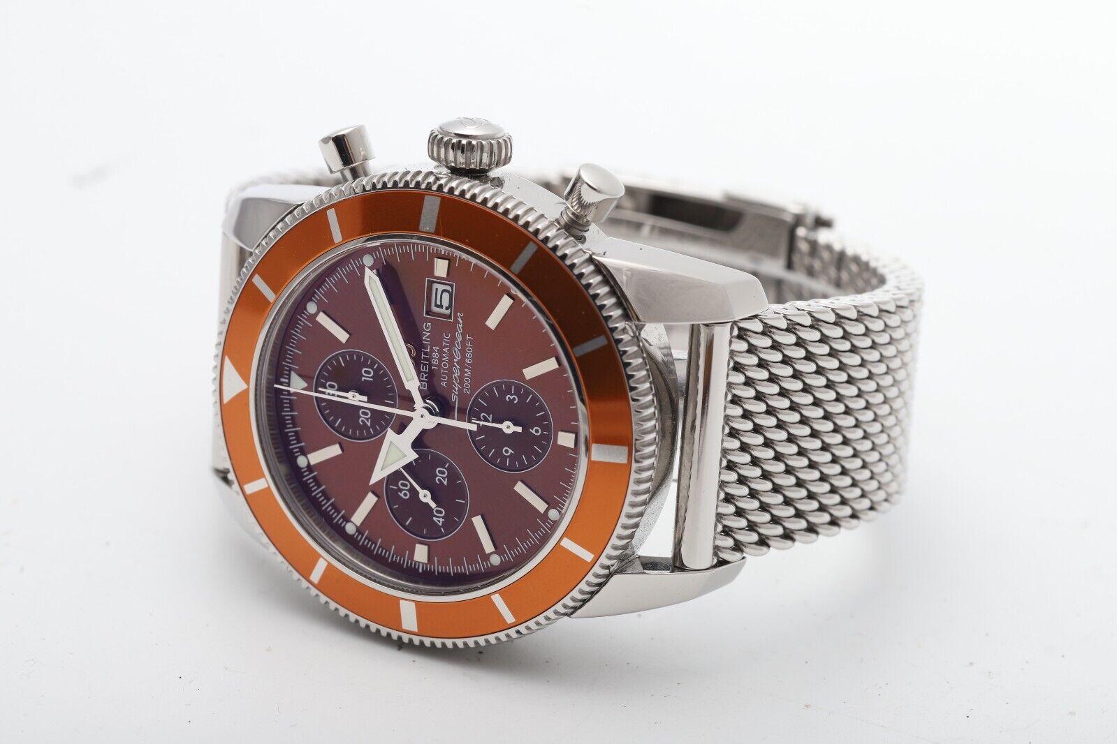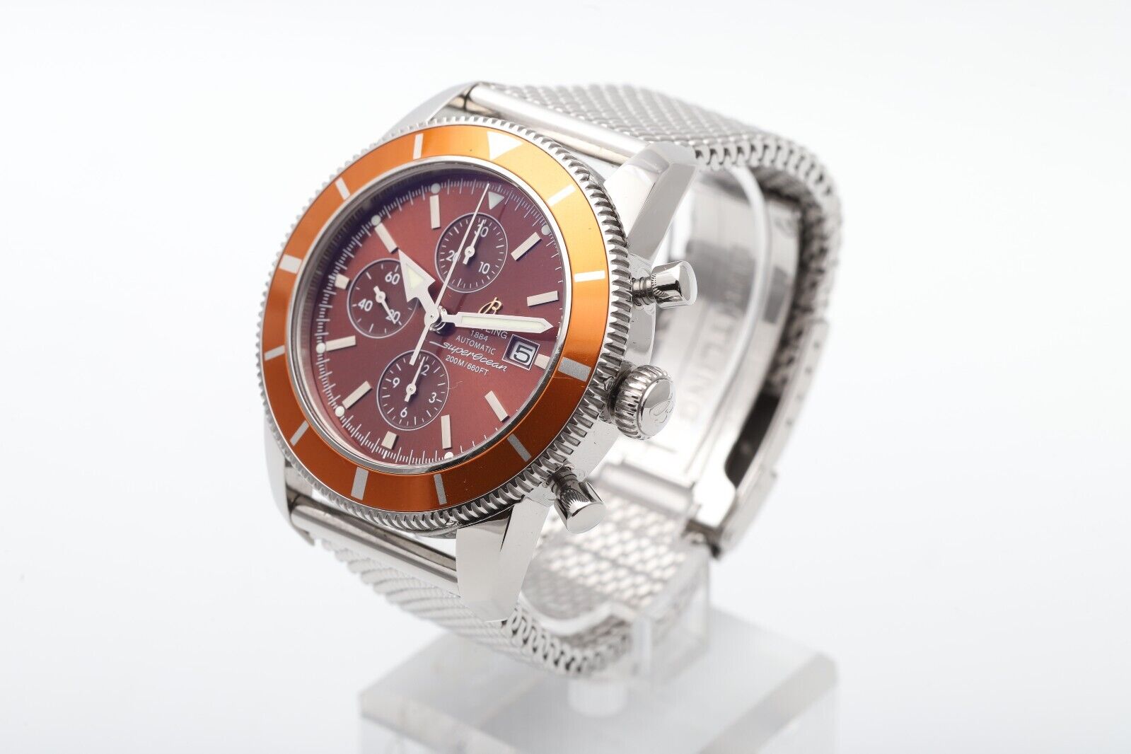 Breitling Superocean Heritage Chronograph A13320 Rare Orange Mesh Men s Watch