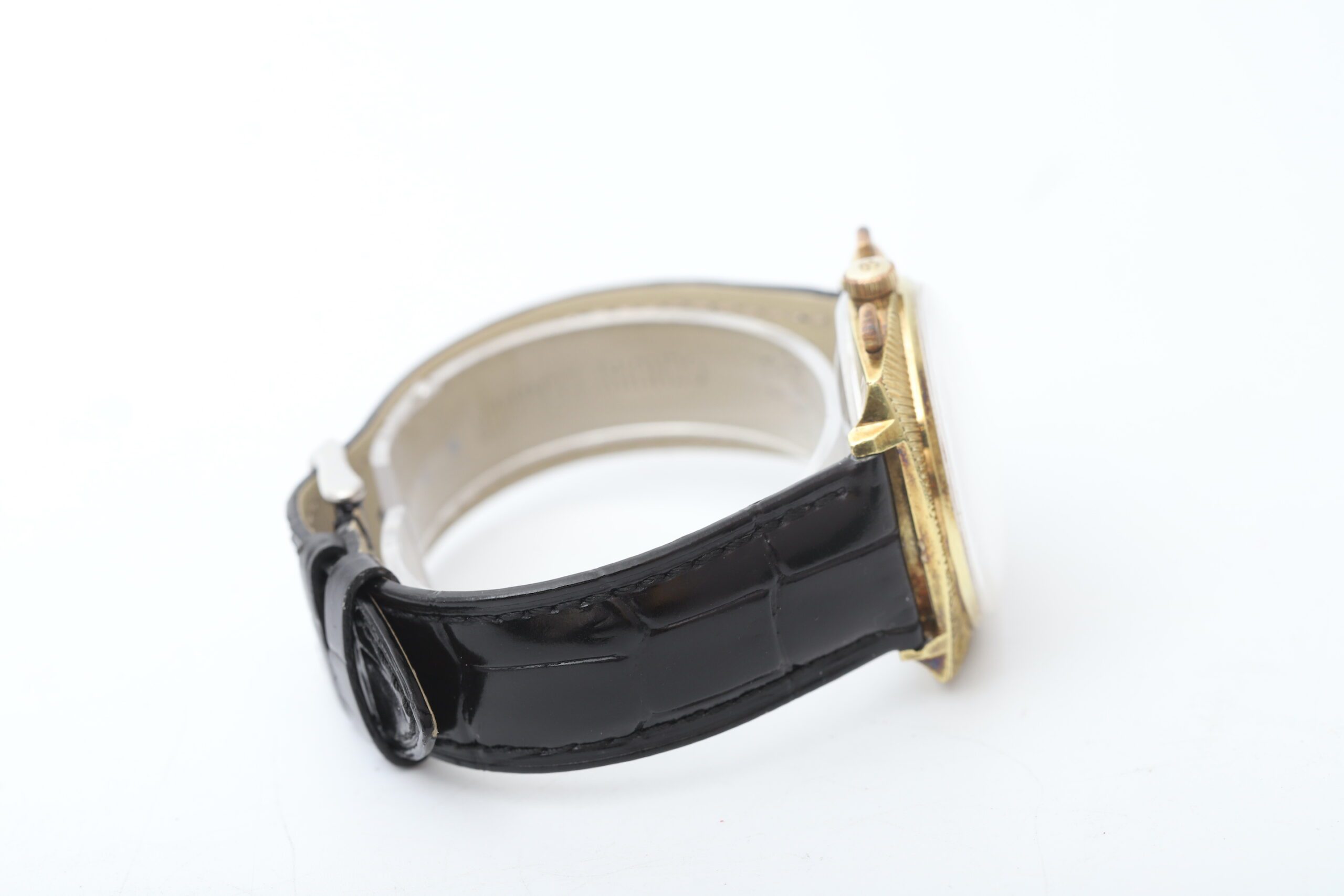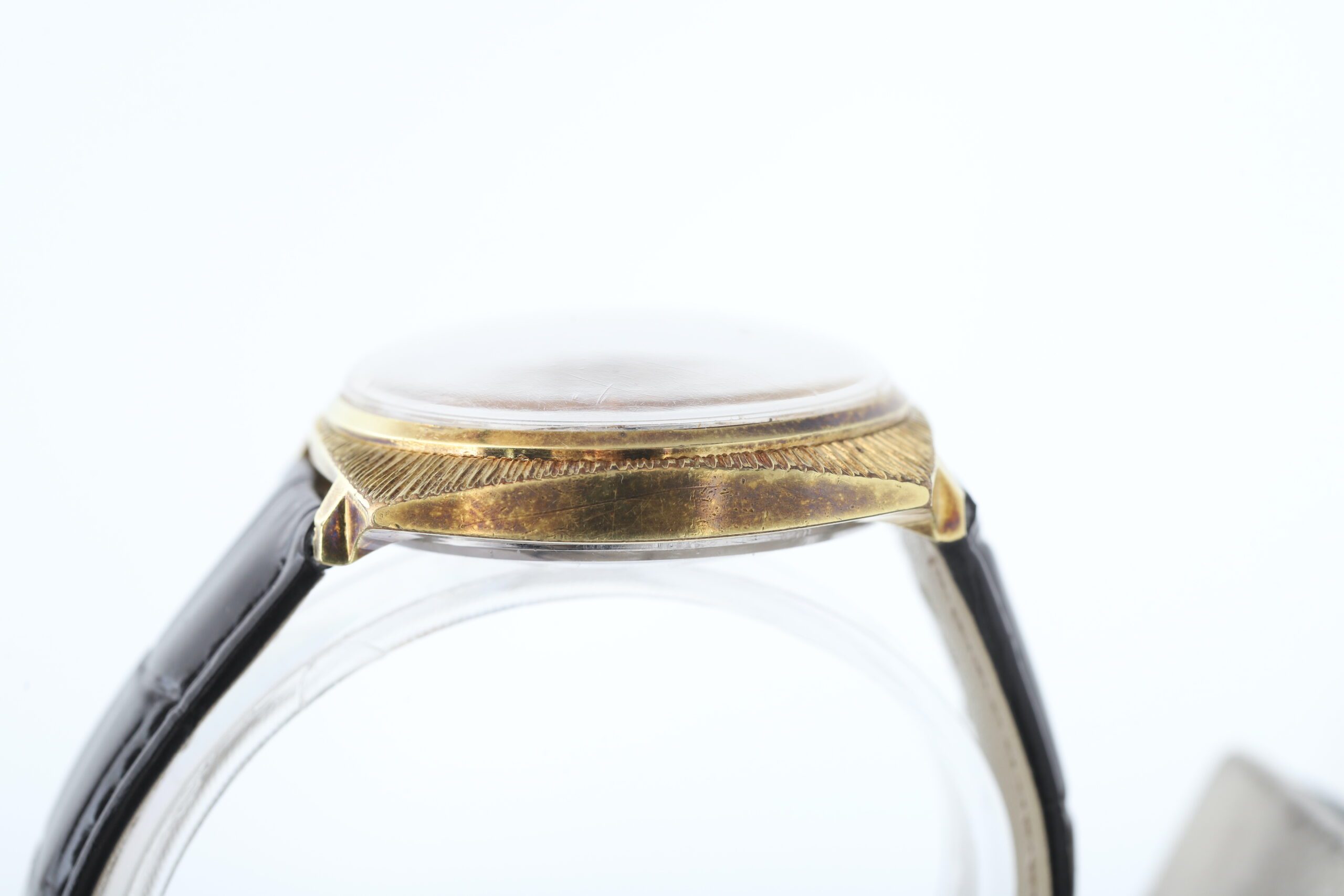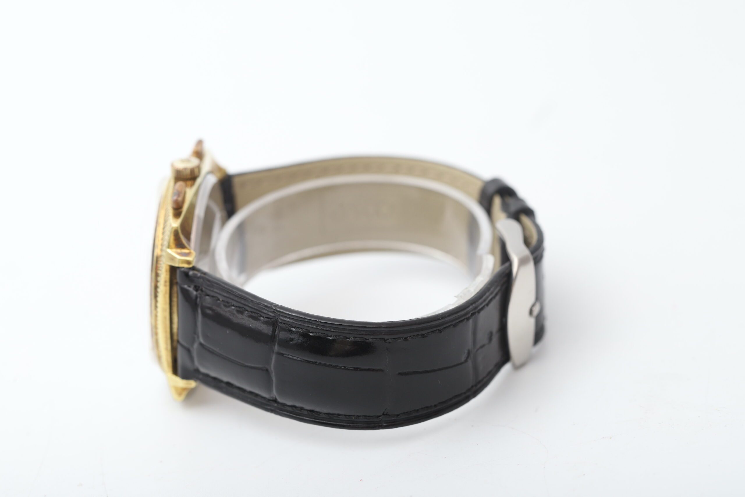 Black Leather Aftermarket Strap: While not the original, this black leather strap complements the watch s vintage aesthetic and offers a comfortable and secure fit on your wrist.