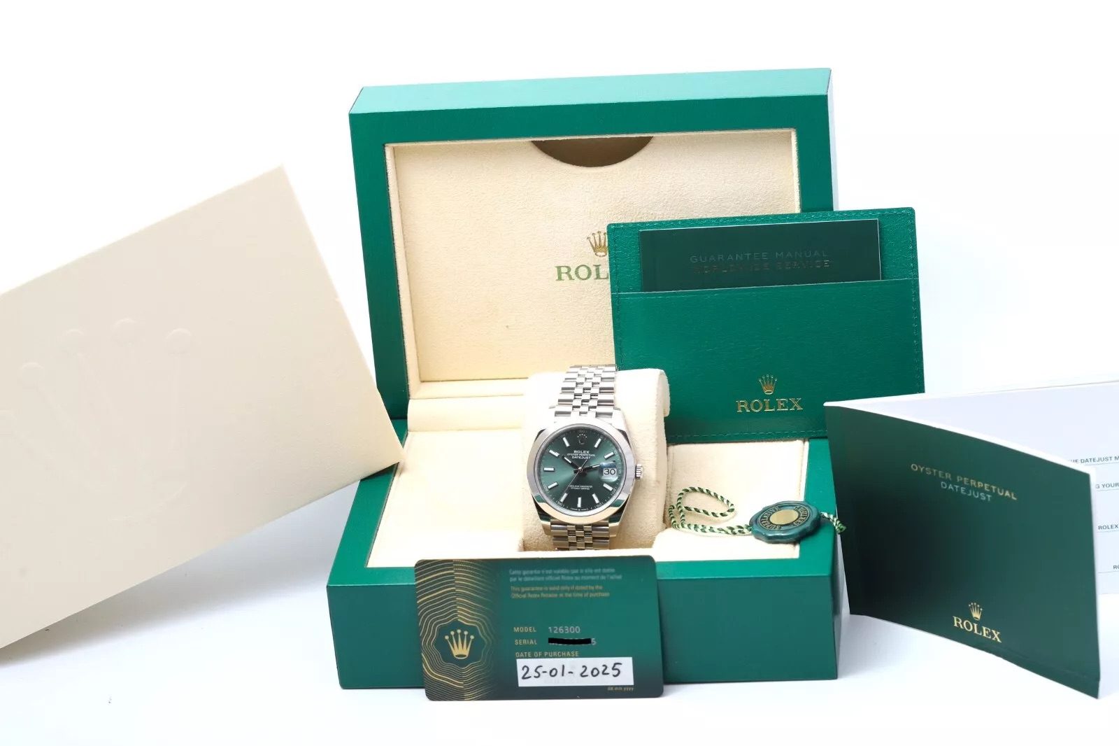 Covered by the official Rolex International warranty until January 2030.