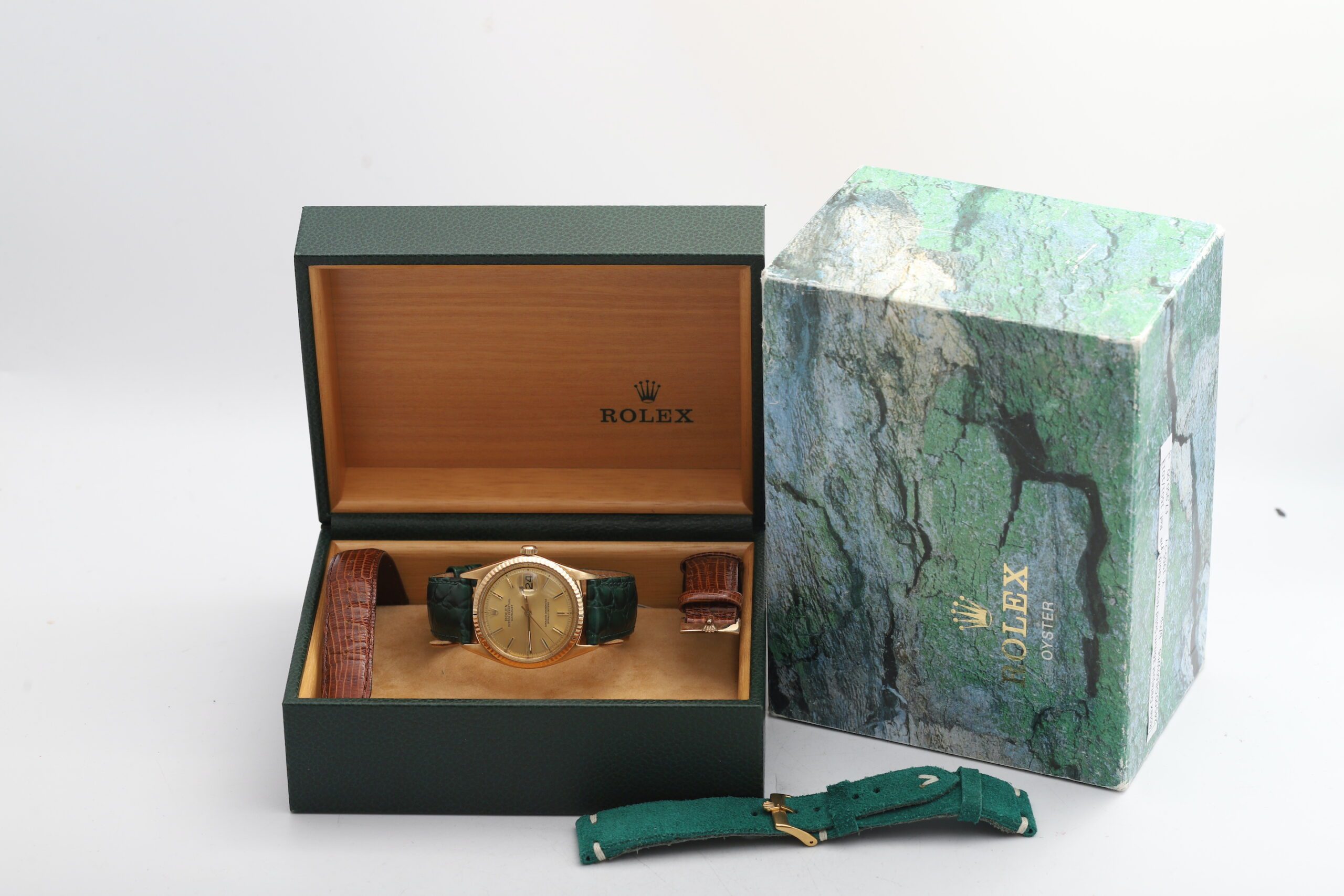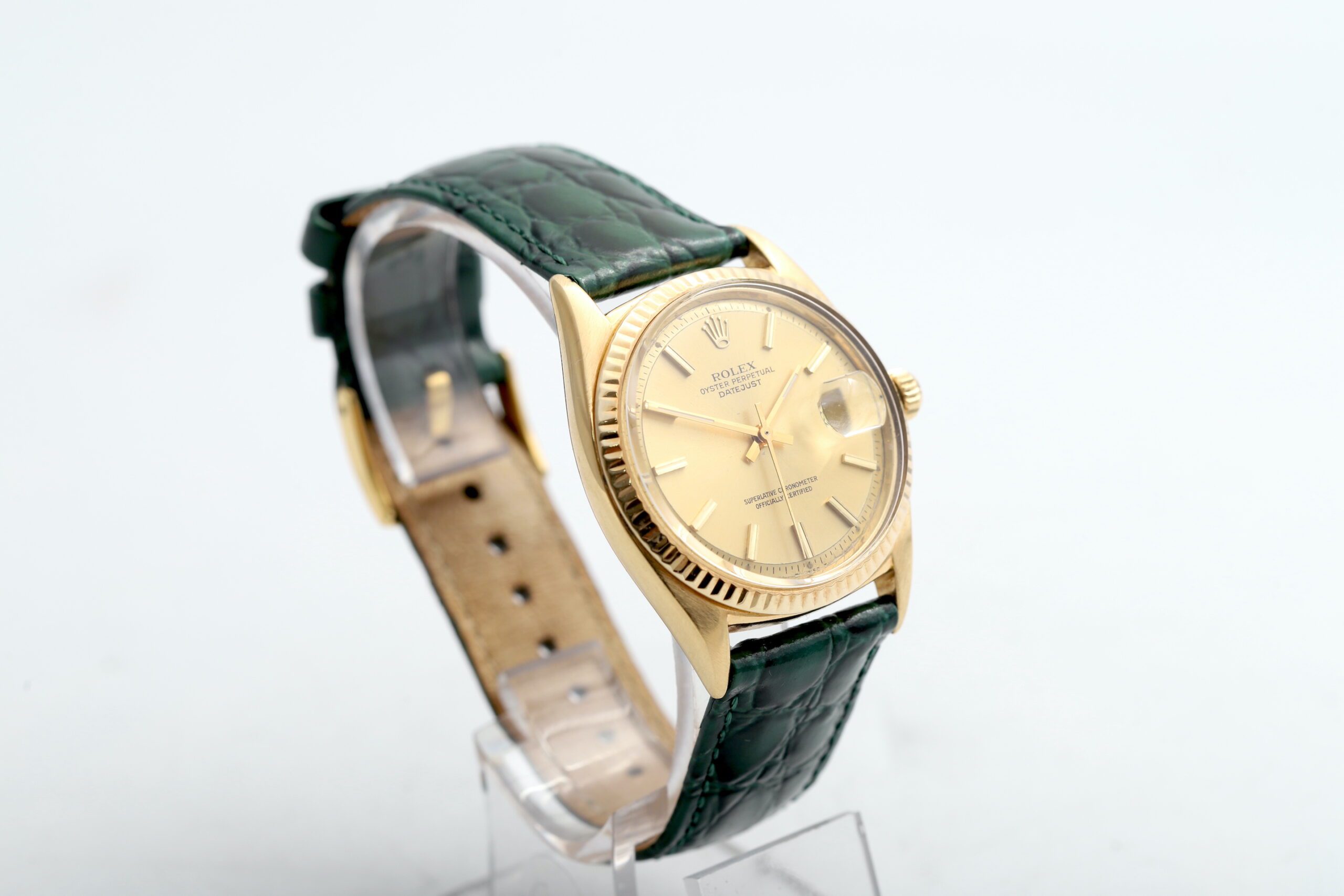 Original Case Back: While the case and caseback originates from a different Rolex model (Oyster Perpetual 1013), the movement and dial are confirmed to be from a Rolex Datejust 1601 with the Original Calibre 1570 movement.